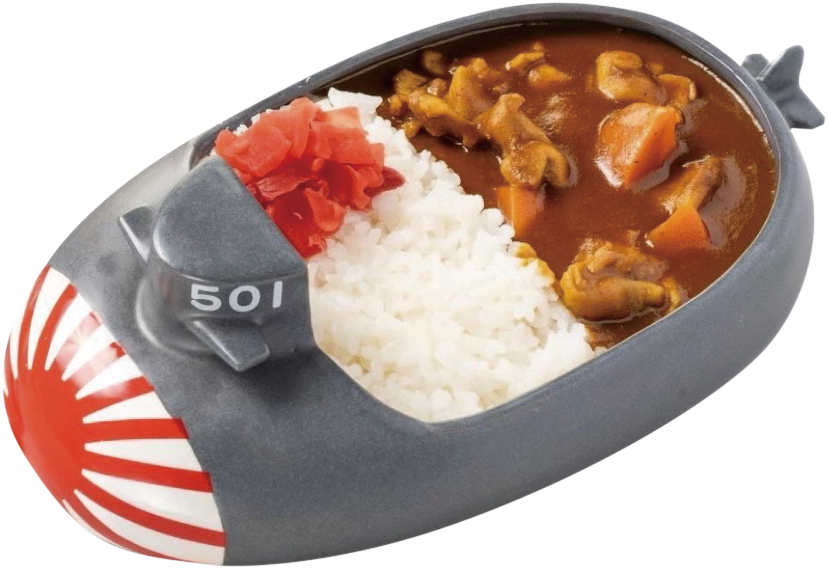 潜水艦をモチーフにした、瀬戸窯元製の本格陶器カレー皿。