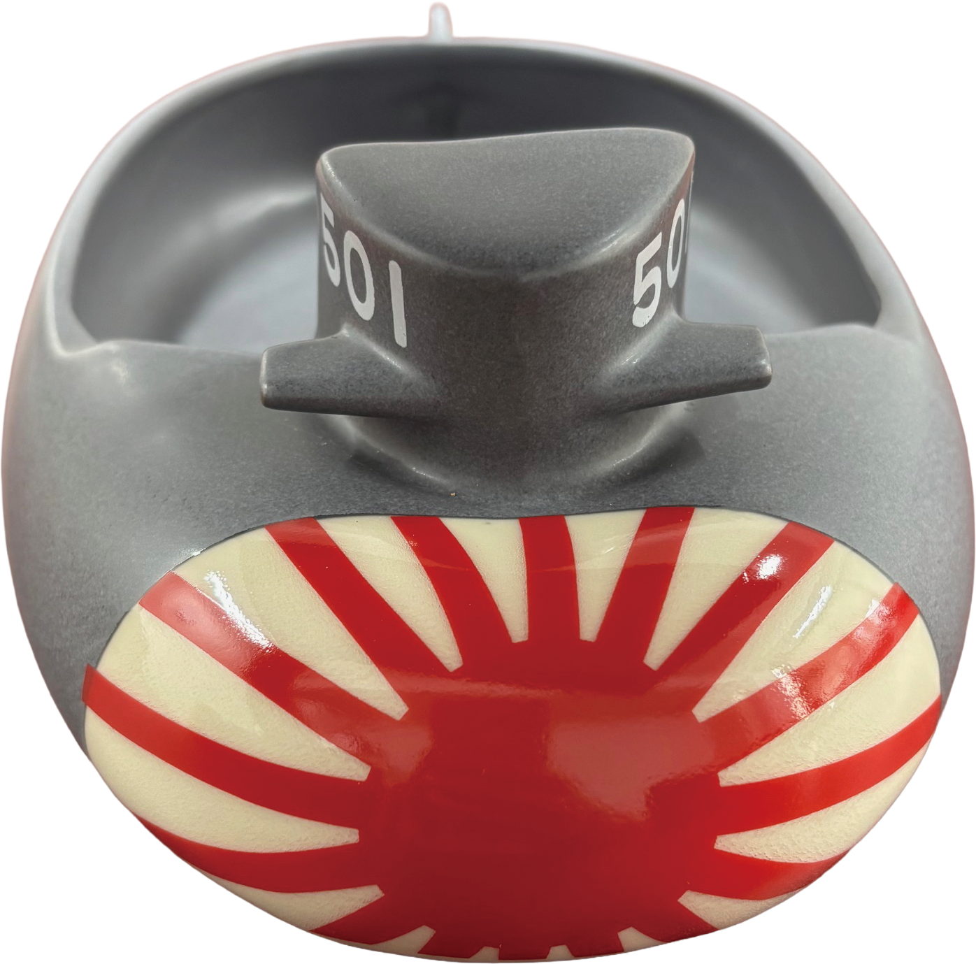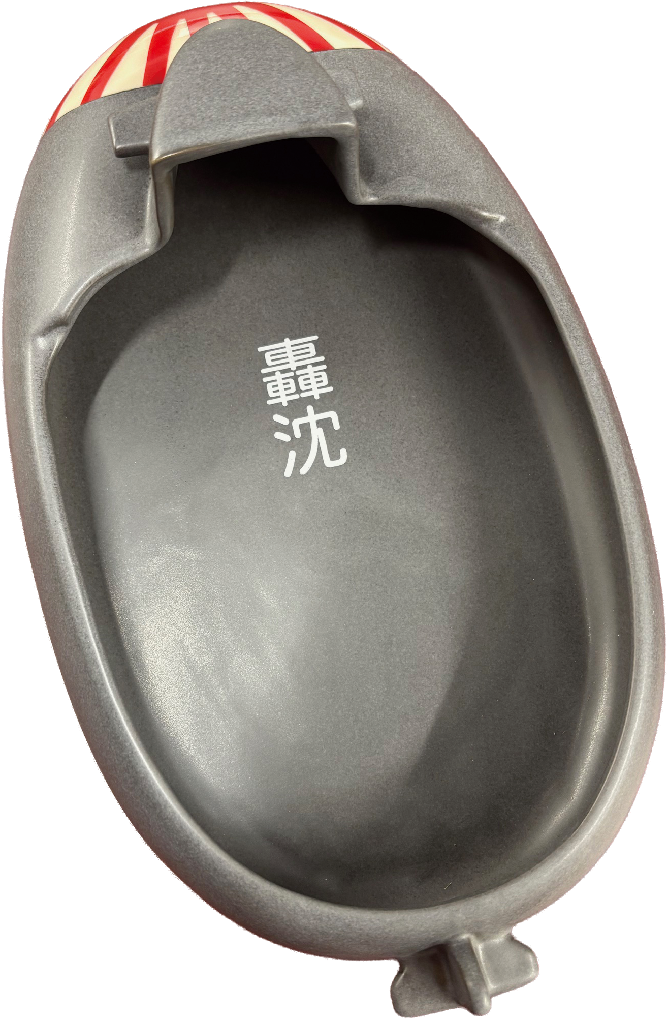 特徴的な潜水艦フォルムは、食卓に印象的なアクセントを加えます。器の内側には「轟沈」の文字を配し、潜水艦モチーフの世界観をより一層引き立てています。